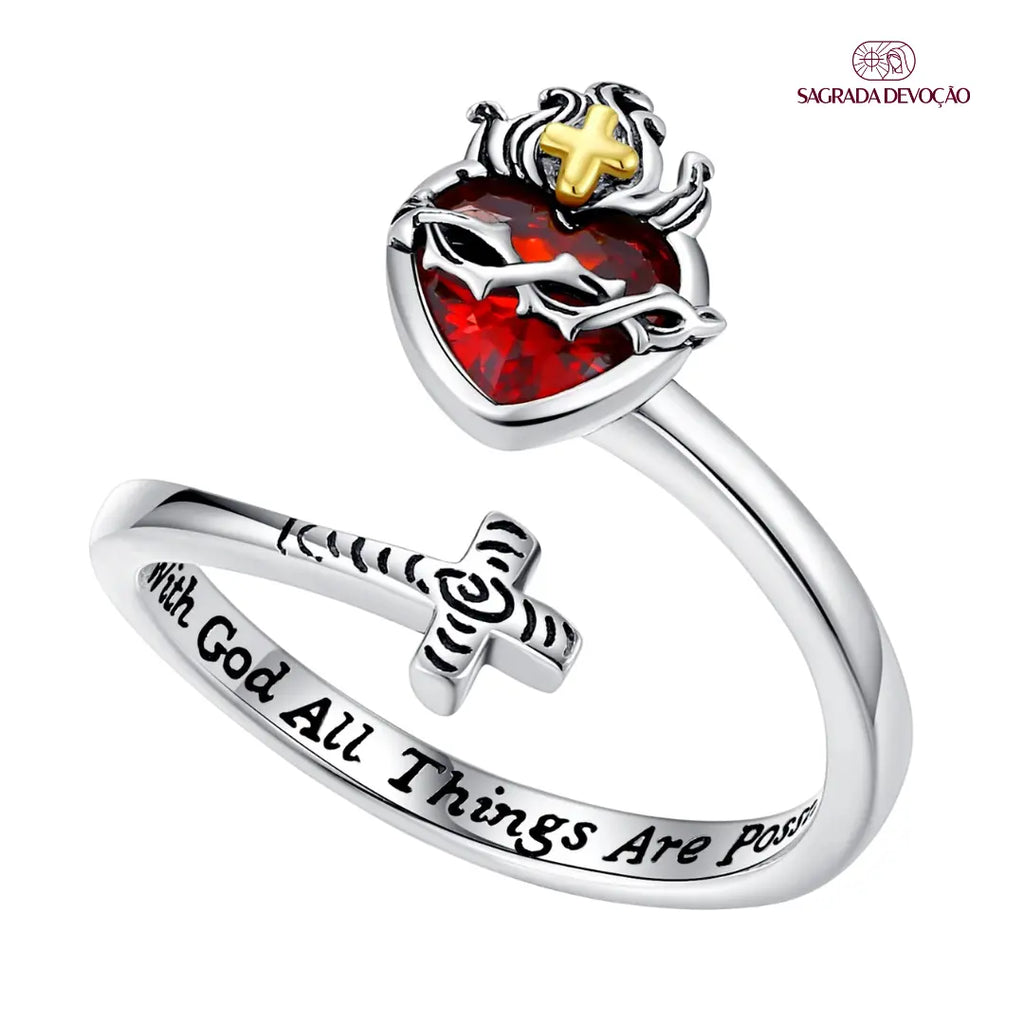 🌟 Carregue a devoção com você! O Anel Sagrado Coração de Jesus Premium é uma joia especial para quem busca proteção e conexão espiritual.