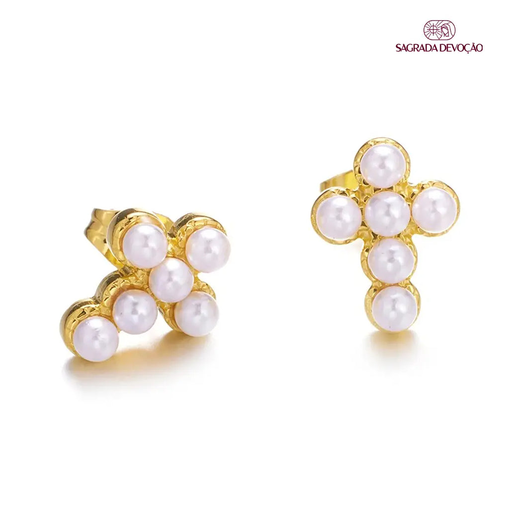 ✨ Carregue sua fé com um toque de luxo! O brinco de cruz mini com pérola em ouro é uma peça elegante e significativa, ideal para quem ama acessórios que refletem sua espiritualidade e estilo. ✨