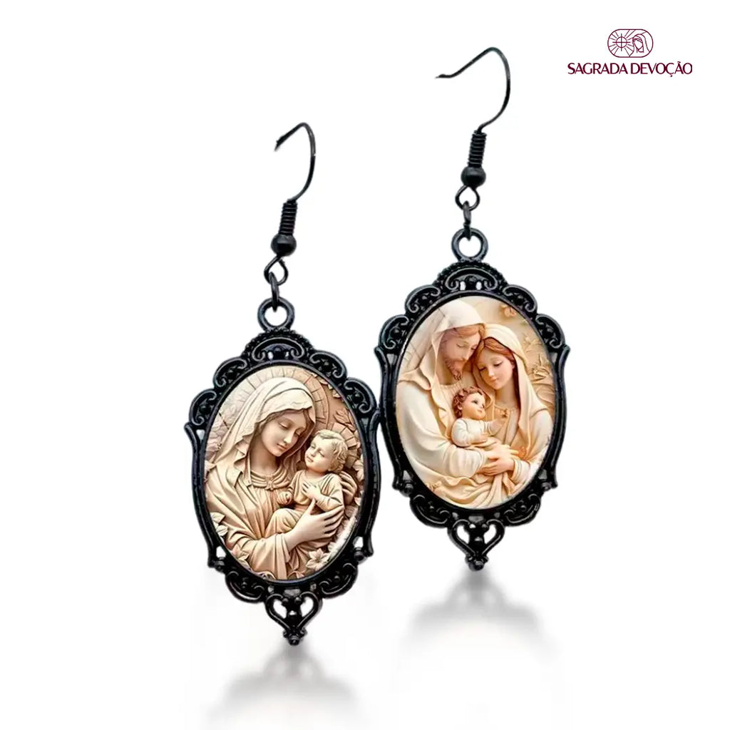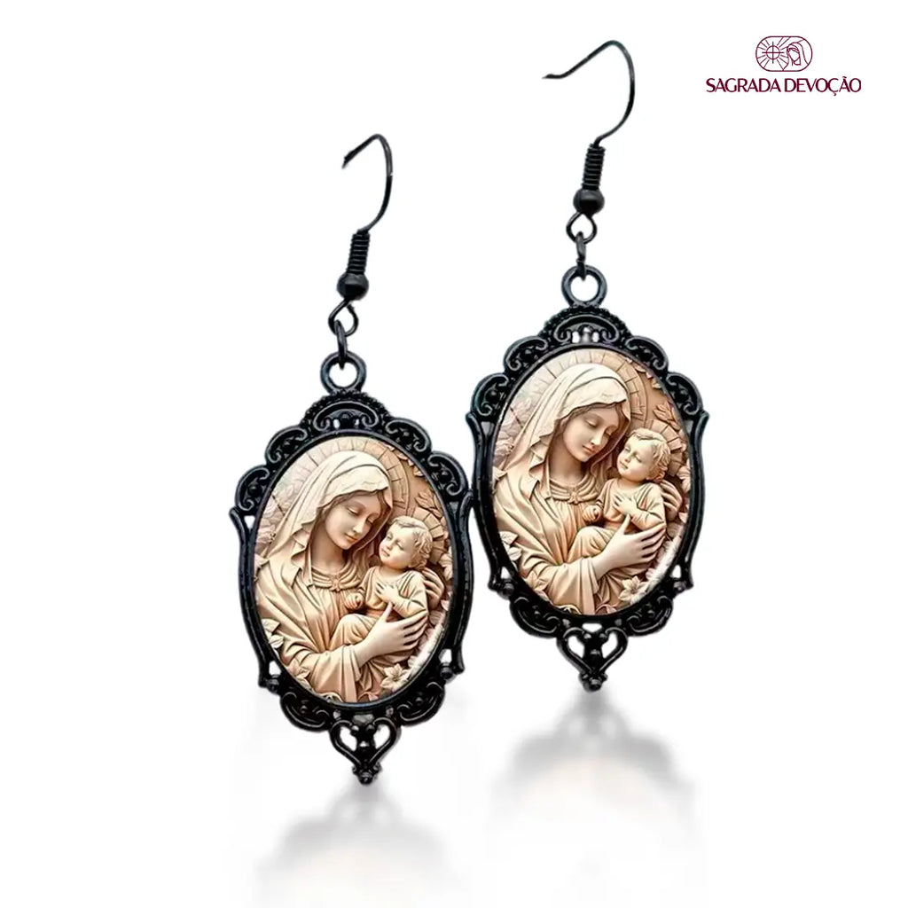 ✔ Imagem de Virgem Maria – A imagem da Virgem Maria esculpida dentro do brinco, simbolizando proteção, fé e devoção.
