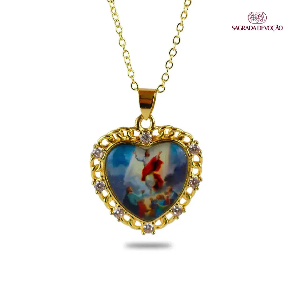✨ Colar Coração Misericórdia de Jesus Ouro 14K ✨