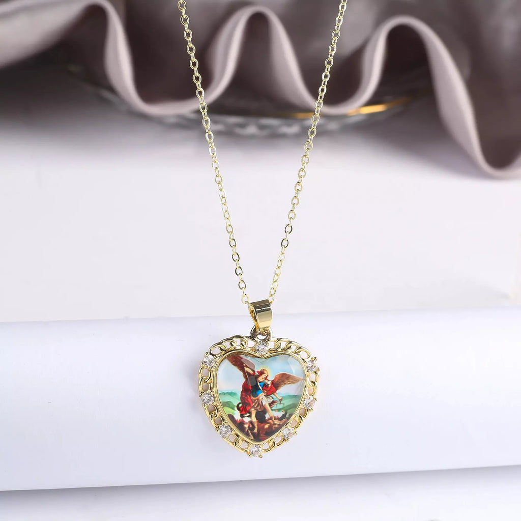 ✔ Imagem de São Miguel Arcanjo no interior do coração – Simboliza força, proteção e fé.