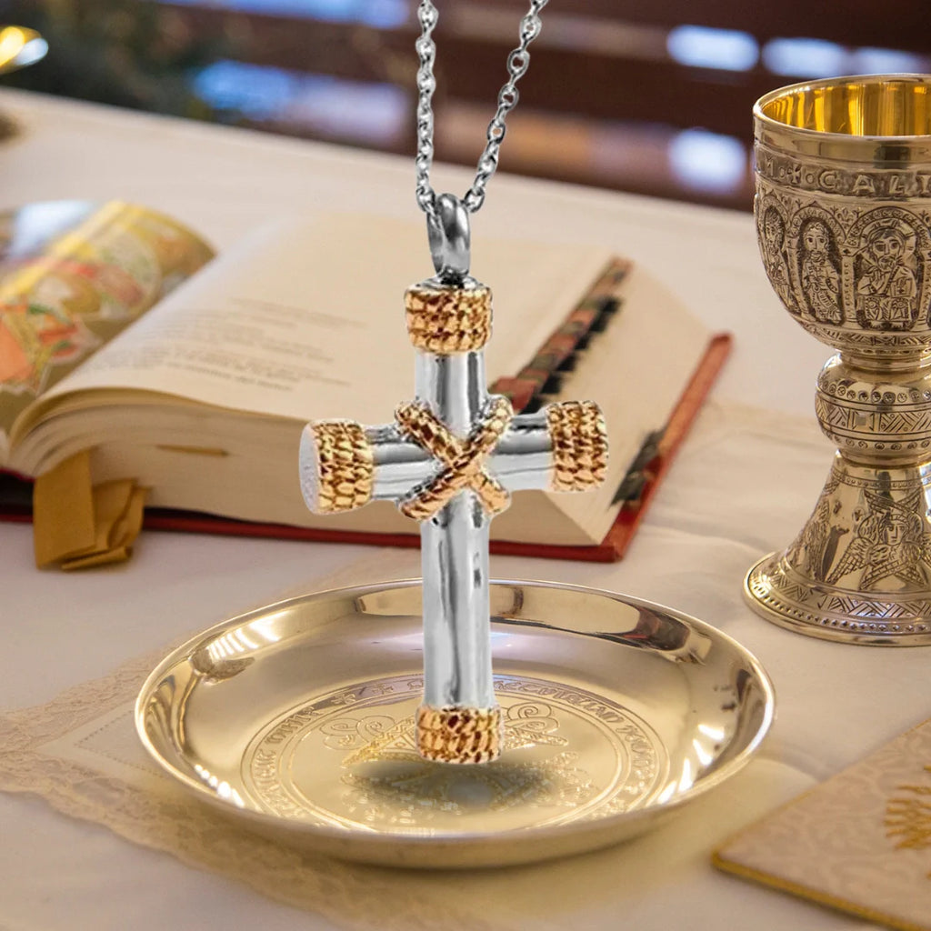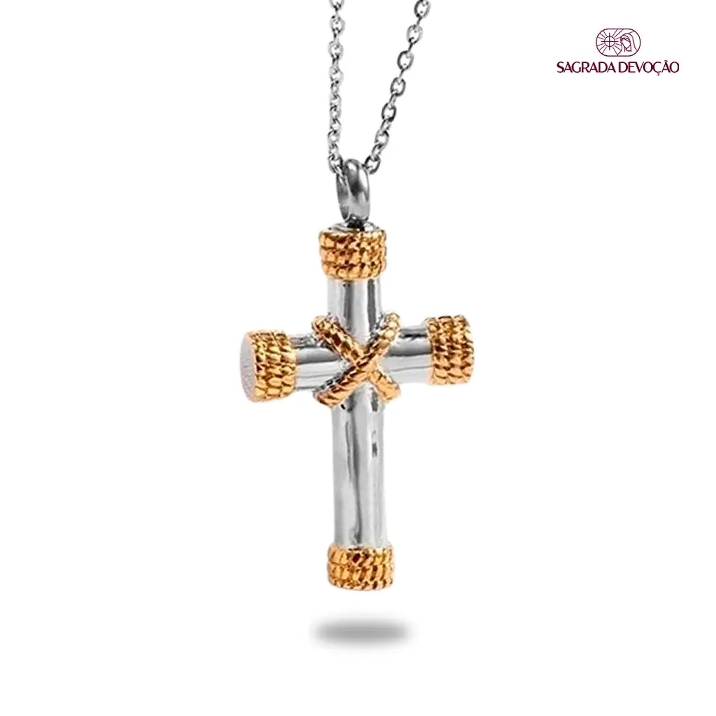 Este Colar Cruz com Corda Amarrada é a fusão perfeita entre fé, estilo e sofisticação. Feito com prata e ouro, sua corda amarrada e detalhes nas cores preto com cinza ou cinza com preto trazem um toque moderno e descolado para um símbolo clássico de devoção.