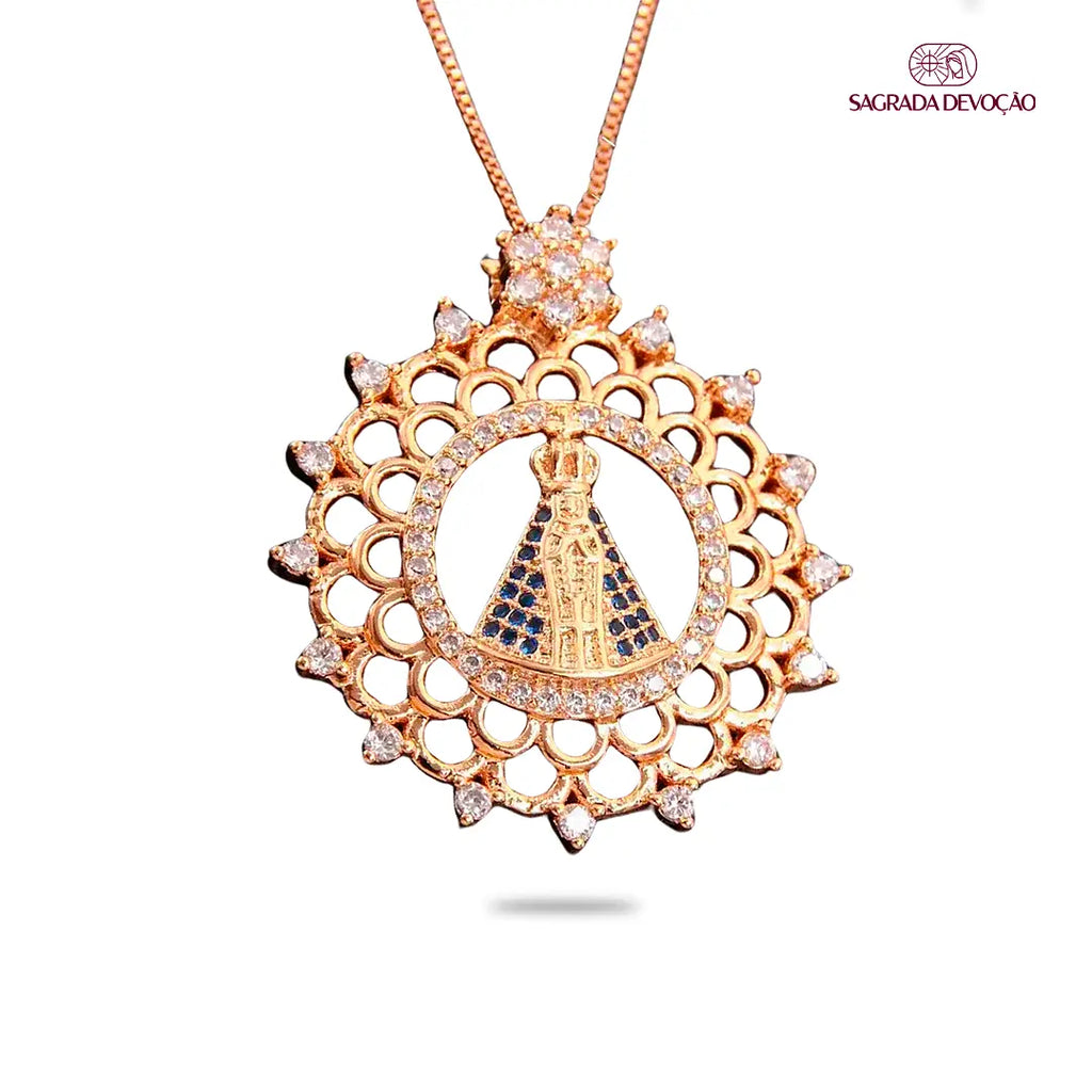 O Colar de Nossa Senhora Aparecida - Amparo é um símbolo poderoso de proteção e acolhimento. A peça representa o amparo constante de Nossa Senhora Aparecida, que cuida e envolve com carinho aqueles que buscam sua intercessão e amor divino. Ideal para quem deseja carregar a presença de Maria em todos os momentos.