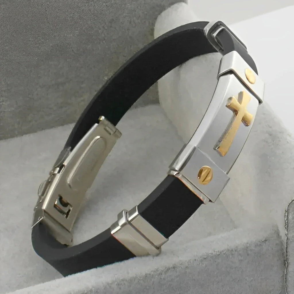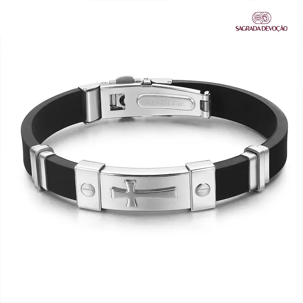 ✔ Design Luxuoso – Feita com materiais de alta qualidade, a pulseira é projetada para trazer um visual elegante e robusto, com acabamento refinado que exalta a cruz no centro da peça.