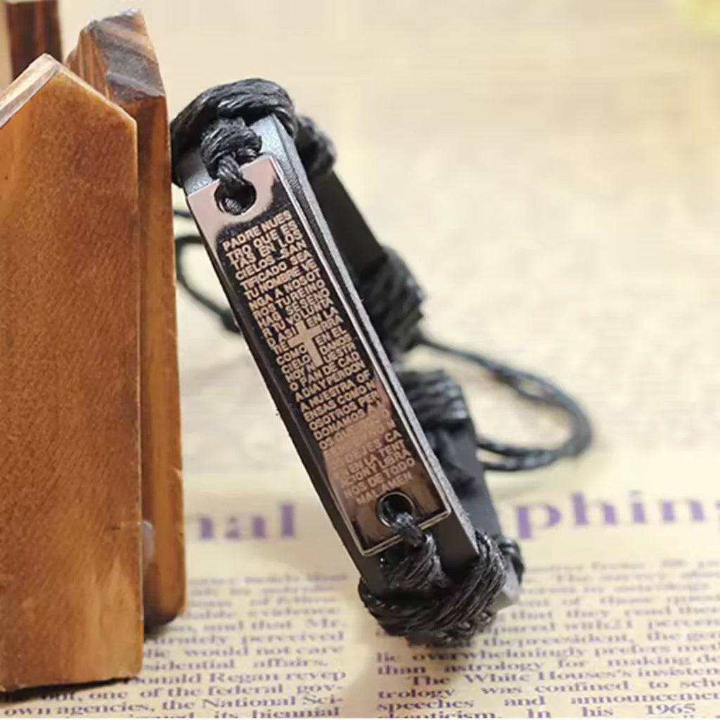 ✨ Carregue sua fé de forma elegante e cheia de significado com a Pulseira de Versículo Bíblico Masculina em Couro. Uma peça que combina conforto, estilo e inspiração, perfeita para o homem moderno que deseja manter a Palavra de Deus ao seu lado. ✨