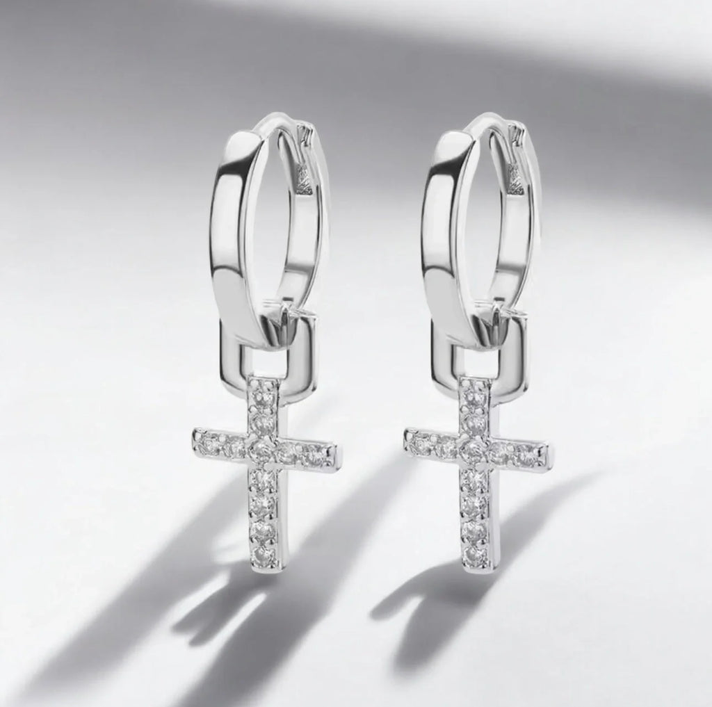 ✨ Carregue sua fé com brilho e elegância! Este brinco de cruz pendurada é a escolha perfeita para quem deseja um toque moderno e repleto de significado. ✨